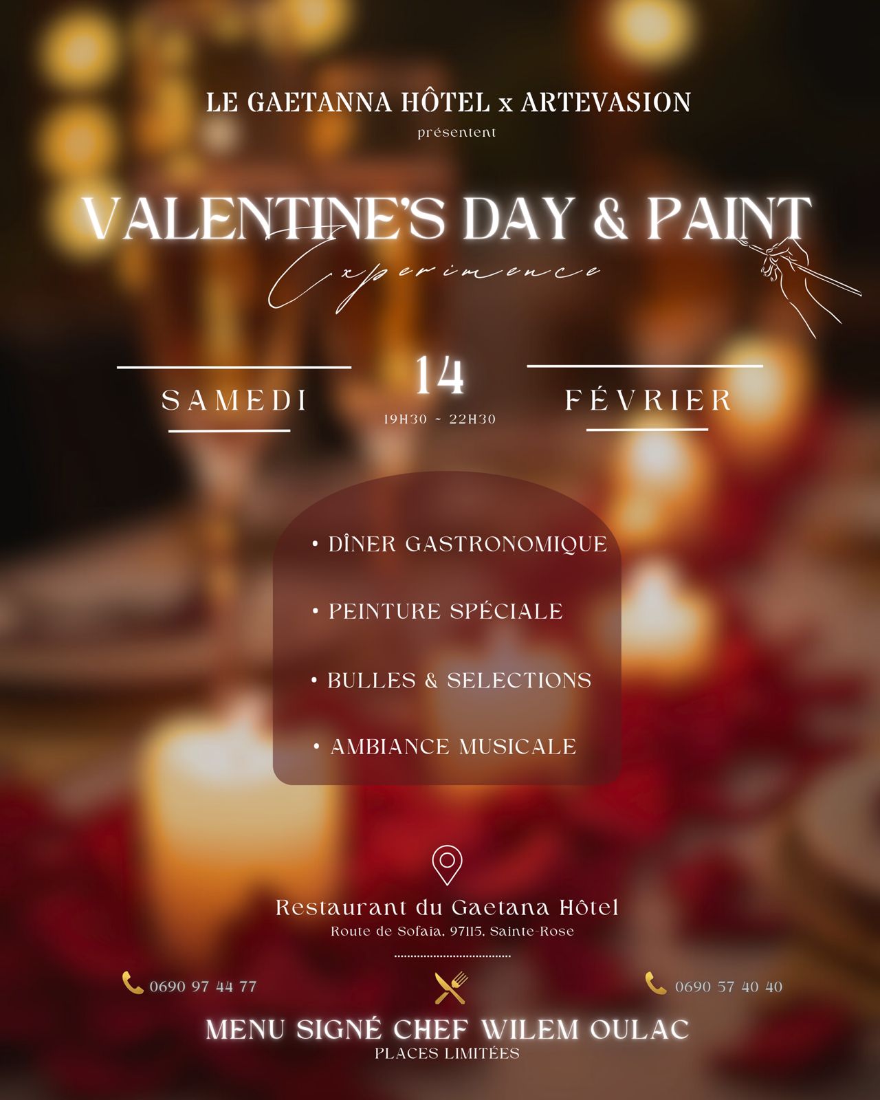 Le Gaetana Hôtel x ARTEVASION vous présentent Valentine’s Day & Paint : une soirée romantique et artistique pour célébrer l’amour dans un cadre élégant.